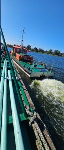 | Fähre ohne Motor Eine Fähre, eigentlich nichts Weltbewegendes, aber diese hier hatte keinen Motor. Auch das ist sicher nichts außergewöhnliches, denn auf der „Elbe Tour 24“ bin ich ja schon mehrfach auf „Motorlose“ Fähren gestoßen, eben die „Gier Seilzug Fähren„. Aber diese hier hat ein neues Kapitel meiner „Fähr-Erfahrungen“ aufgeschlagen. Hier wurde ein Motorboot an die Fähre außen „Angeflanscht“. |