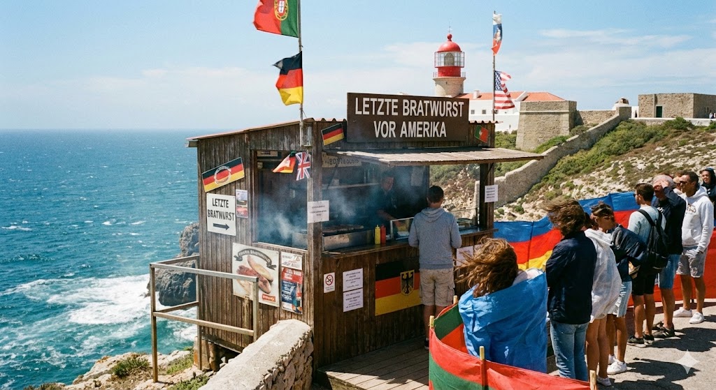 Und natürlich wartet am Cabo da Roca die legendäre Bratwurst auf dich – ein überraschend deutscher Akzent am Ende Europas, der seit Jahrzehnten Motorradfahrer, Wanderer und Abenteurer anzieht. Dazu ein portugiesischer Kaffee, und der Blick schweift über 3.000 Kilometer Atlantik bis zur nächsten Landmasse: Amerika.