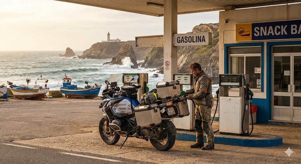 Die 30-Liter-Tank der GS 1250 sollte für die Strecke ausreichen, aber tanke sicherheitshalber in Lagos oder Sintra voll, bevor du die letzten Kilometer zum Kap fährst. Die Serpentinen dort lassen den Verbrauch steigen, und Tankstellen sind rar.
