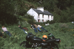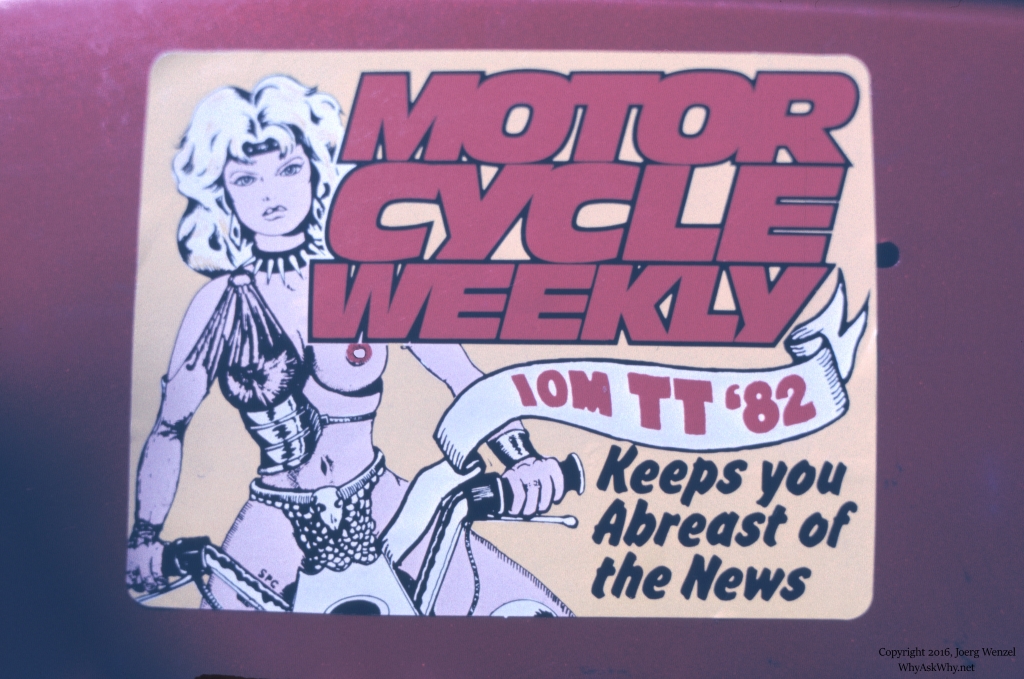 Ein schöner Artikel über die Tourist Trophy ist im Spiegel Online (100 Jahre TT), aber das muss man selber erlebt haben, an „Crazy Sunday“ schon morgens mit dem Trinken anfangen damit man nicht mit den Bekloppten auf die Strecke geht, auf einer 500er Enduro ein Fässchen zum lokalen Pub zum Auffüllen gefahren und bei der Rückfahrt mit Polizeibegleitung zum Zeltplatz zurückzukommen hat was, mit einer normalen CX500 versuchen in der Mountain Region auf einen Hügel hinaufzufahren -aber nicht die Straße sondern eine Wiese nehmend (hat natürlich nicht geklappt), in Liverpool zig Liter teureren Sprit abgezapft bekommen weil man keine Ahnung hatte (diese Gangster) und so weiter und so weiter.