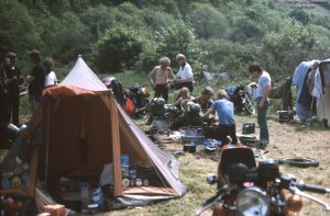 Irgendwie haben sich da aber auch nur Deutsche Biker gefunden. Manchmal ist auch was kaputt gegangen. Das war aber irgendwie kein Problem, jeder hatte noch ein „richtiges“ Bordwerkzeug. Und eine Hebebühne für tiefergehende Motorreparaturen wurde auch flugs aus 2 leeren Bierfässern improvisiert, die man natürlich im Seitenwagen mitgebracht hatte, weil man die „Englische Plörre“ nicht trinken „konnte“.